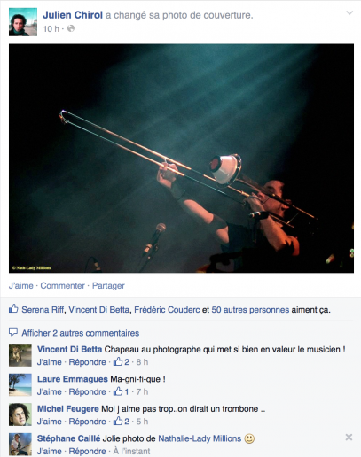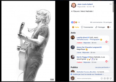 SUR LEURS MURS Lorsque les artistes partagent les photos de Nathalie Courau ou Nathalie-Lady Millions sur leurs réseaux sociaux. Charger la suite Partager : Partager sur FacebookPartager sur Facebook Share on XPartager sur X Partager sur WhatsAppPartager sur WhatsApp Partager sur PinterestPartager sur Pinterest